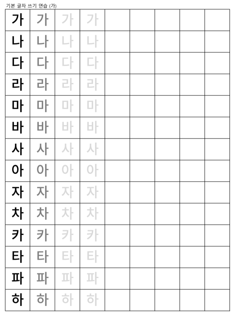 한글을 배우는 아이들이나 악필이라서 글씨 교정을 위해 연습이 필요한 분들을 위한 자료를 공유한다. 인터넷에서 좋은 자료가 있어서 그곳의 링크를 걸어둔다.