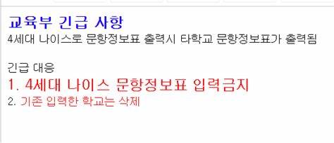 최근 4세대 나이스 도입과정에서 접속이 안된다는 교사들과 학부모들의 항의글들이 있었는데, 기말고사 답안 유출이라는 대형사고가 발생했다고 한다. 교직원들은 타 학교의 기말고사 답안을 볼 수 있게 되었다고 한다. 현재, 교육부에서 전국 학교들에 공문을 보내 기말고사 문제를 변경 및 수정할 것을 요청했다고 한다. 방학 중에 4세대 나이스를 도입했으면 어땠을까 하는 아쉬운 생각이 든다. 기말고사가 시작된 학교도 있지만, 시작될 학교가 더 많이 남은 것으로 아는데 말이다.